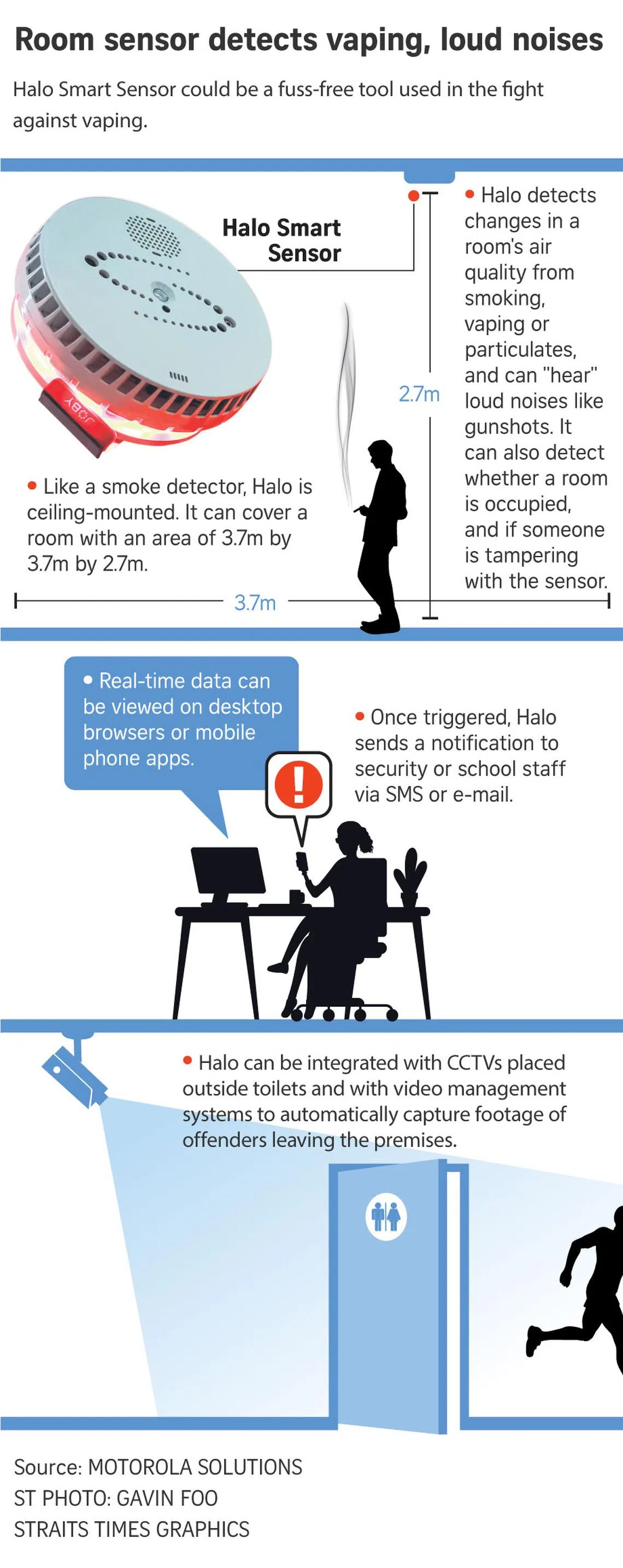 Communications and security company Motorola Solutions has, since September, been marketing its Halo Smart Sensor at organisations here, including at schools that have seen a spike in students caught vaping.
