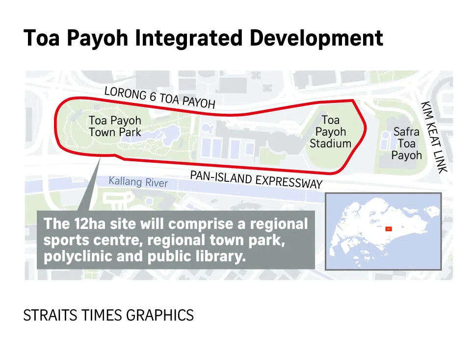 The 12ha site will comprise a regional sports centre, polyclinic, public library and regional town park, and will be located between Lorong 6 Toa Payoh and the Pan-Island Expressway.