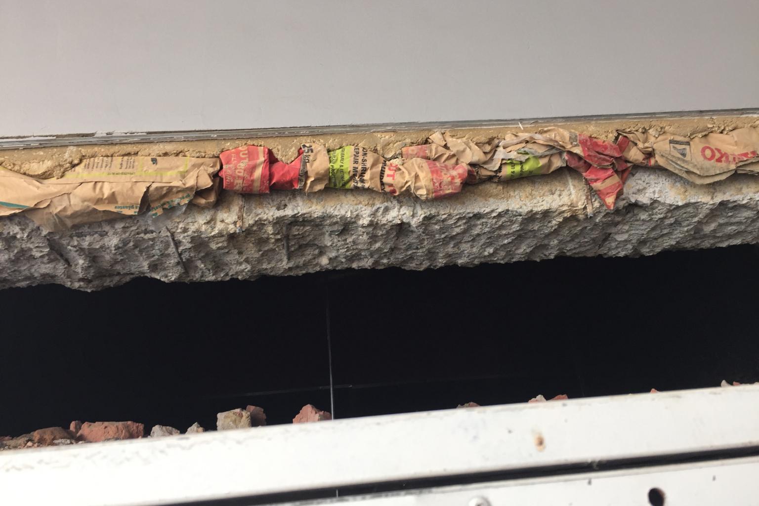 It turns out newspapers and cement paper bags were used as fillers and they were exposed when replacement works started towards the end of last month on one of the two cargo lifts in the building.