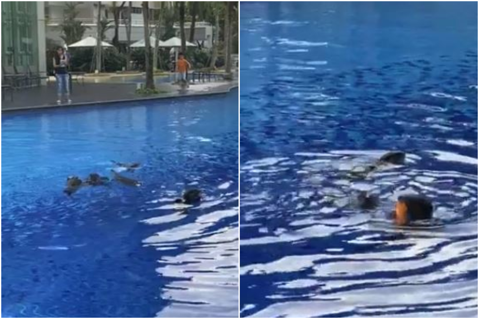Residents at Park Infinia @ Wee Nam condo were treated to the unusual sight over the weekend as the otters frolicked in the swimming pool.
