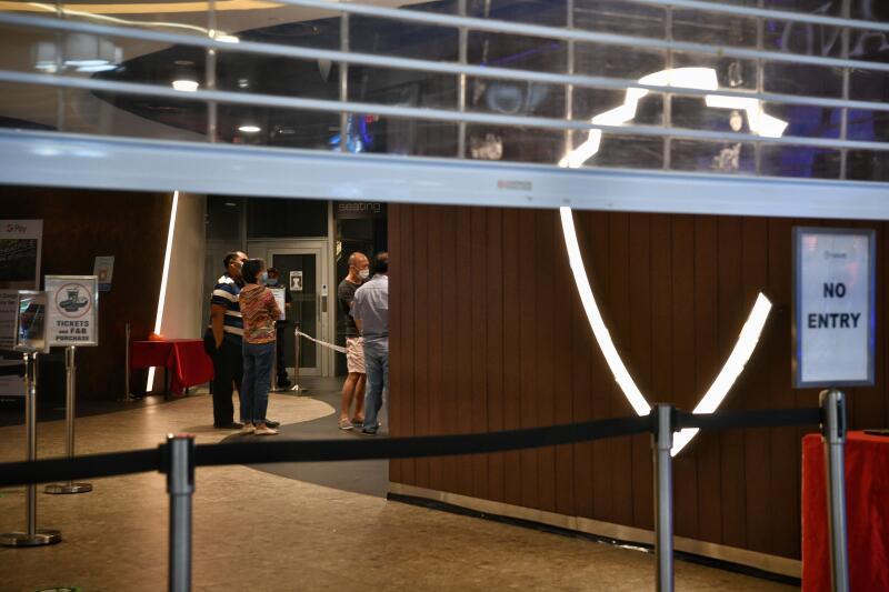 A half-closed shutter at Shaw Theatres in Nex shopping mall on Aug 30, 2020.