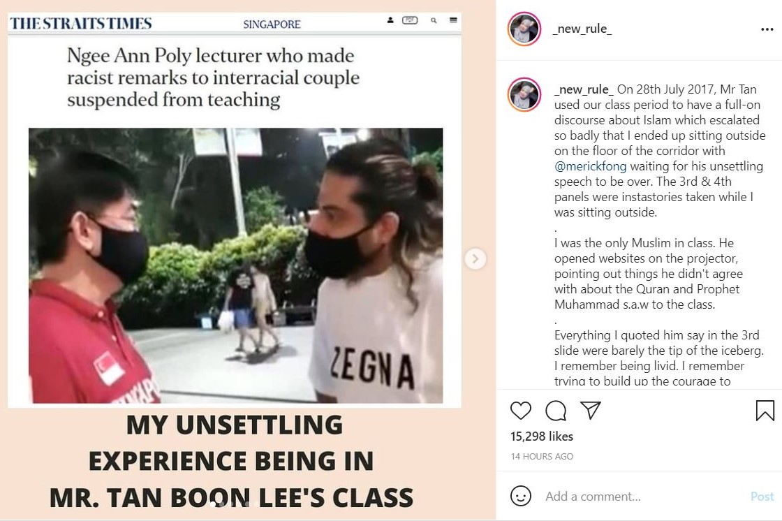 One user on Instagram alleged that Mr Tan once made disparaging comments about Christianity in class, causing outrage among the students, while another alleged that the lecturer had made her take off her hijab.
