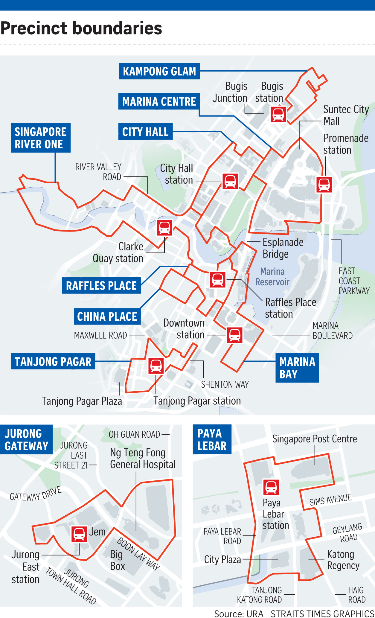 All nine - representing a mix, from historic and civic districts to mixed-use precincts inside and outside the city centre - were selected. These are China Place, City Hall, Jurong Gateway, Kampong Glam, Marina Bay, Marina Centre, Paya Lebar, Raffles Place and Tanjong Pagar. Together with Singapore River One, there are now 10 BIDs.
