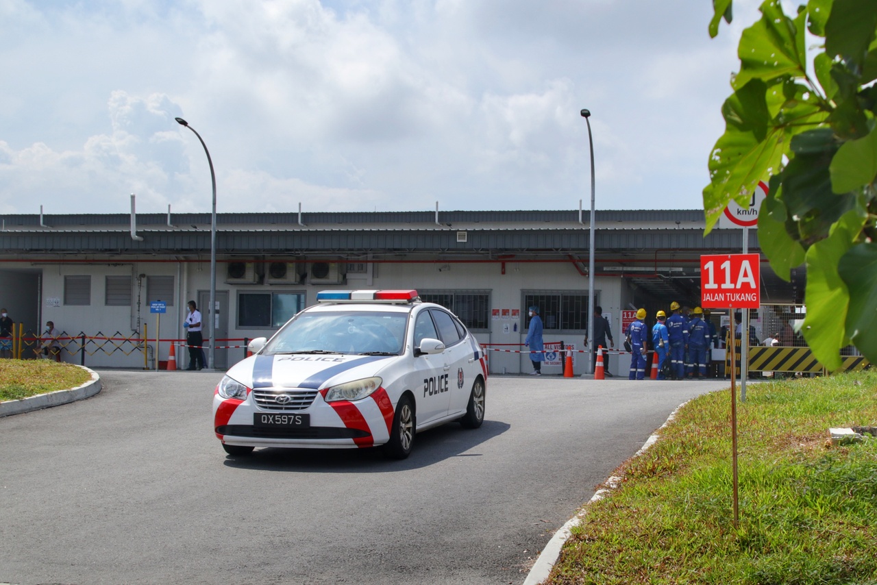 Patrol officers from Jurong Police Division were dispatched to the dorm, where Ministry of Manpower officers were already engaging with the workers.