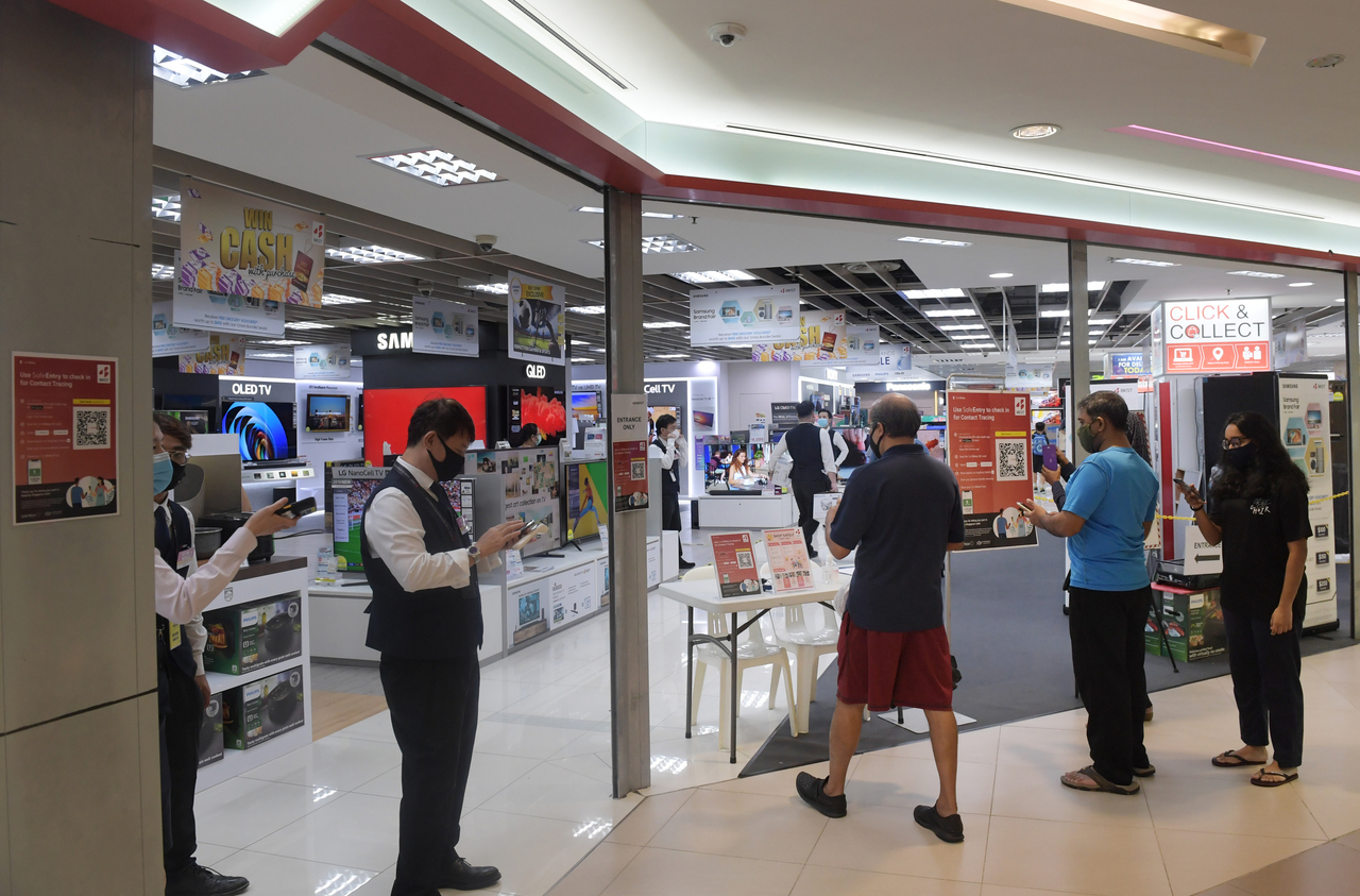 A photo taken on June 20, 2020, shows shoppers at Best Denki in Junction 8.