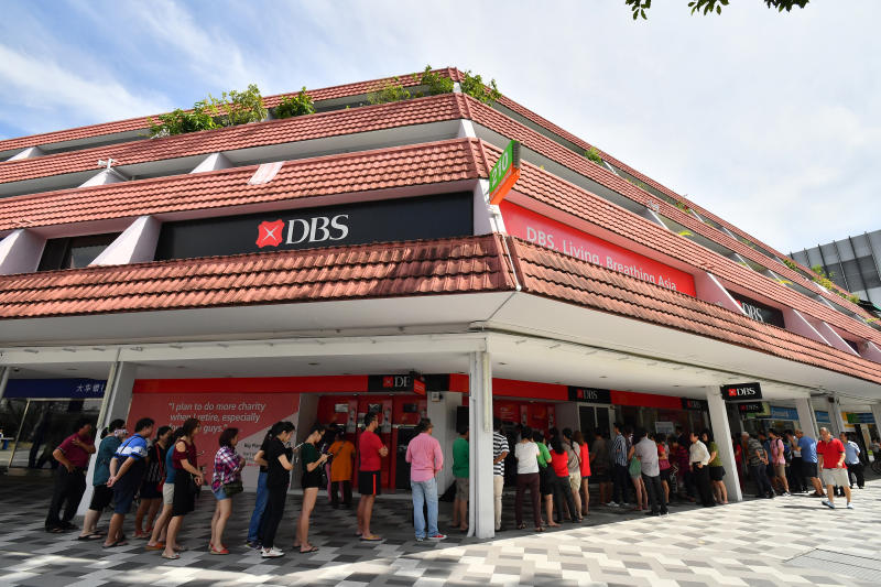 People queueing up to deposit money at a DBS Bank in Bedok on Feb 3, 2017.