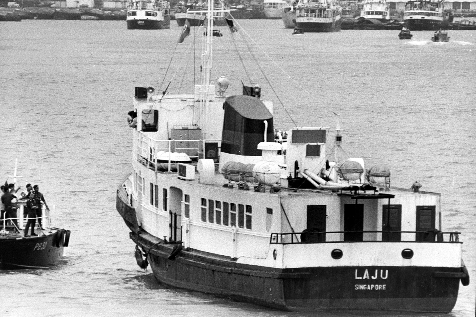 Soon, it was surrounded by 15 marine police boats, Customs launches and three Singapore Maritime Command gunboats.