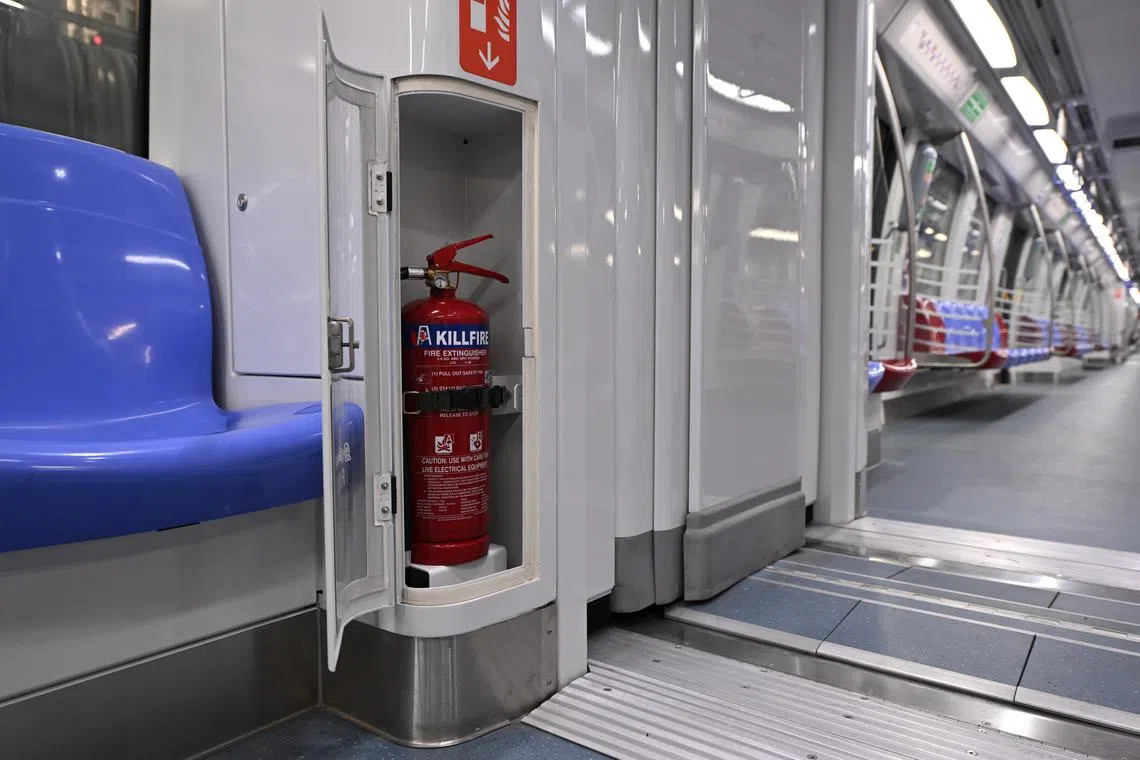 The new trains – in striking bold purple, instead of the orange-and-purple striped exterior of the earlier ones – are also fitted with maintenance-friendly features for train staff, such as hinged fire-extinguisher box covers that are easier to open and less prone to accidental dislodging.