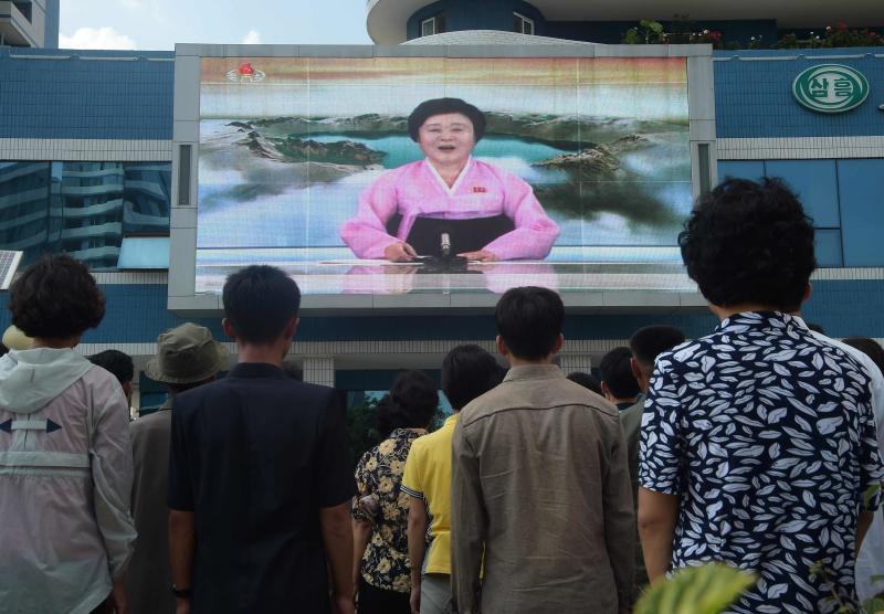 She delivered the news seated in front of a frequently used backdrop of Mount Paektu, a dormant volcano on the Chinese border symbolic of Korean nationhood.