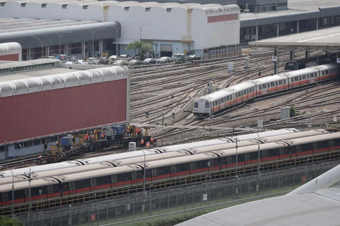 The derailed vehicle blocked a key crossing, preventing trains serving the North-South Line (NSL) from leaving the depot.
