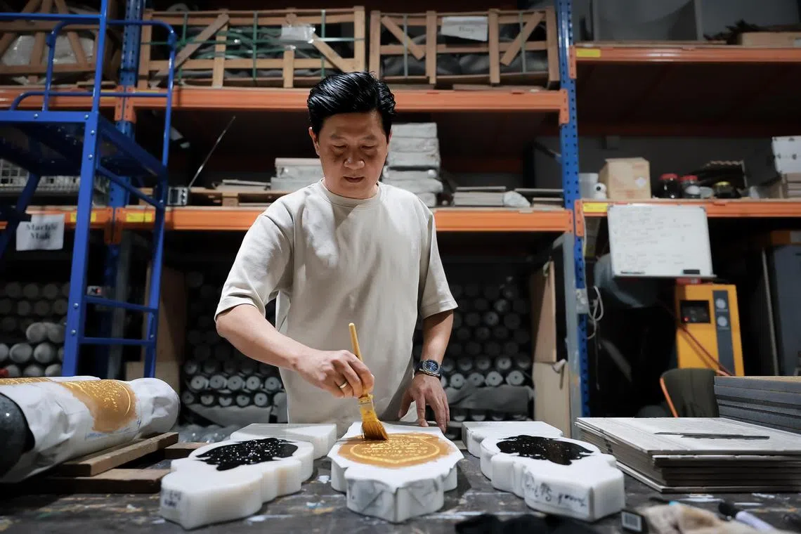 Dapur Kubur Singapore director Terry Ong, 46, painting the letters that were engraved on the granite tombstones at his workshop in Boon Lay on Oct 2, 2024.