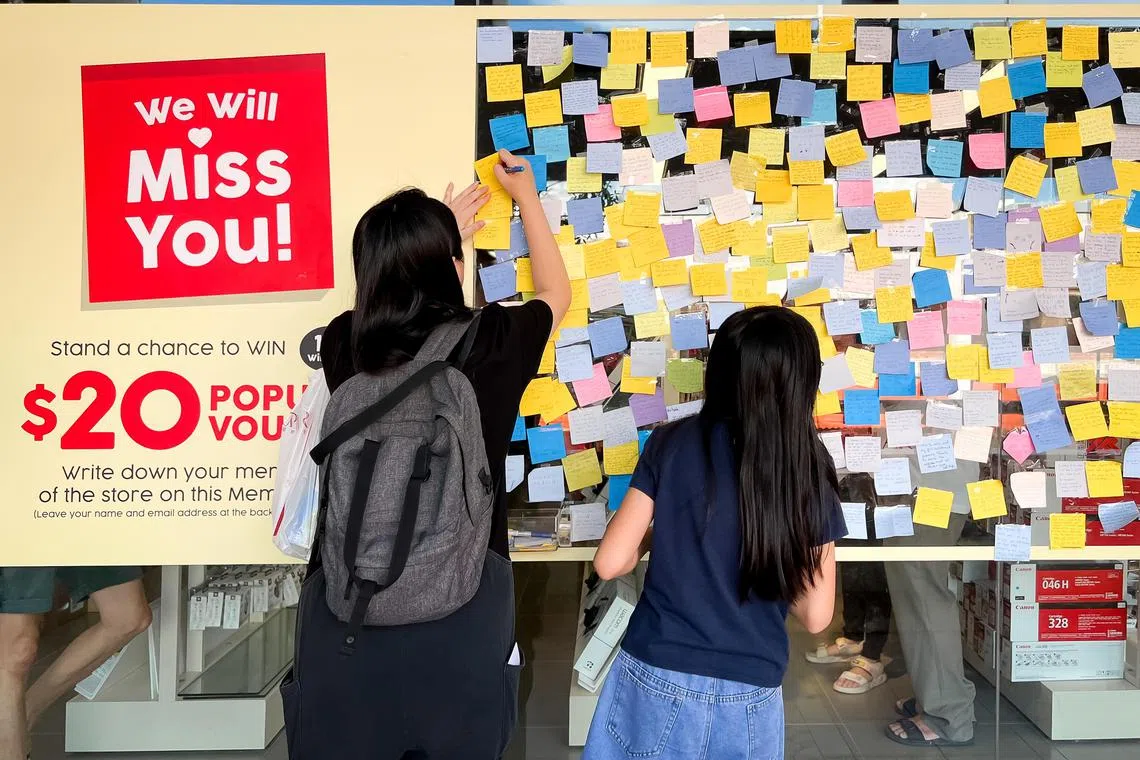 People leaving messages on a “memory wall” outside the Popular bookstore at Marine Parade Central, which will be closing down on June 18.