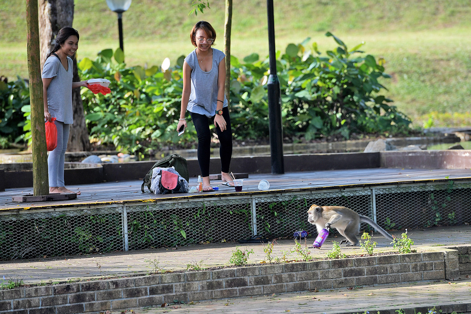 A macaque stealing a bottle at MacRitchie Reservoir. When it comes to creatures that can sting, bite or create mischief, people prefer that the animals are moved away from their living space rather than be left alone, a joint survey by two universities showed.