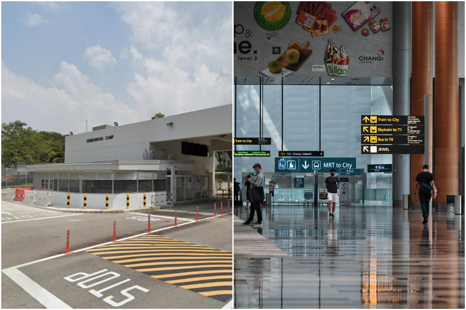Sembawang Camp (left) and Changi Airport Terminal 3.