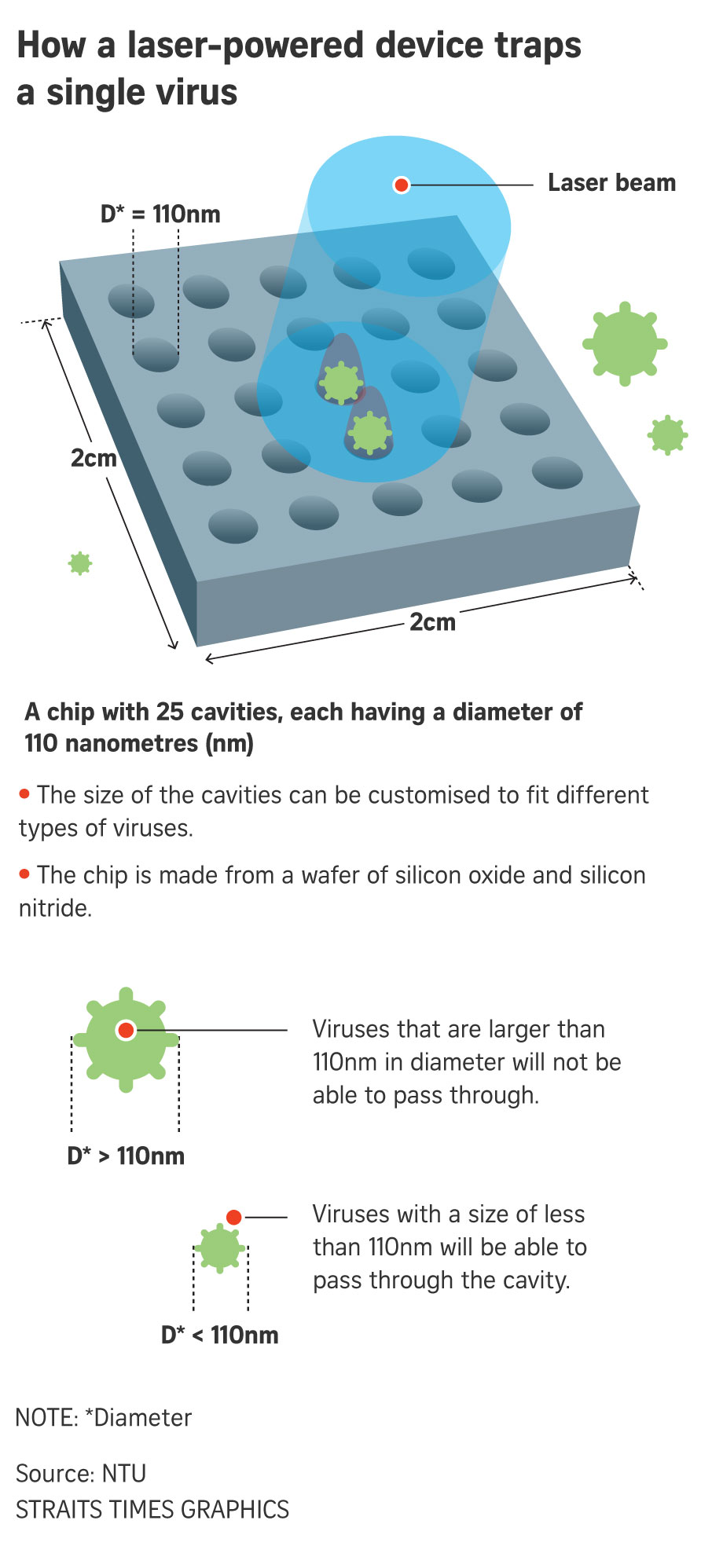 SINGAPORE - In a first of its kind, a laser-powered device that can trap and move a single virus around using light has been created in Singapore.