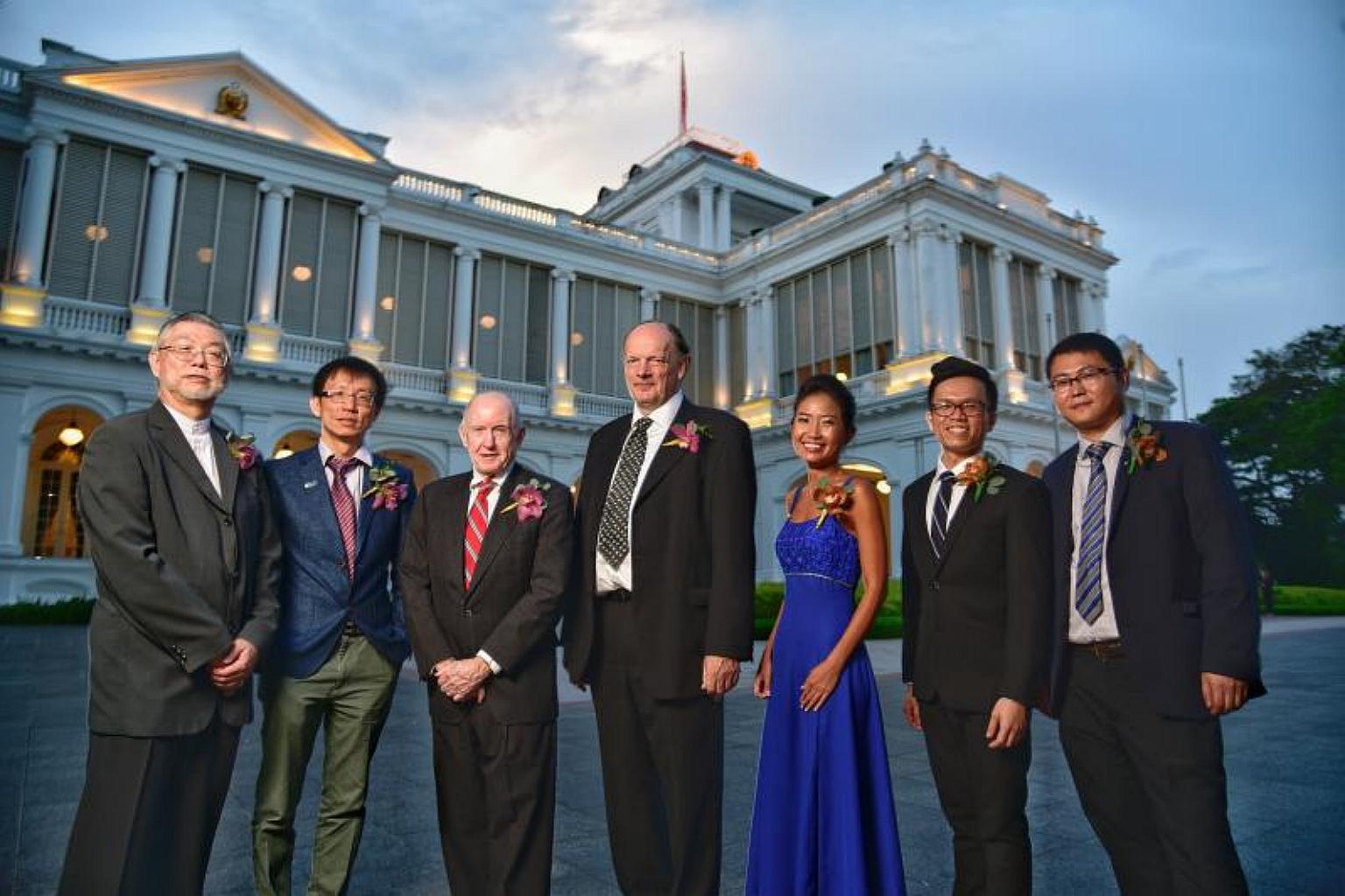 (From left) Professor Ng Wun Jern, Professor Gan Wee Teck, Professor Edward Warren Holmes, Professor Sir David Philip Lane, Dr Li Jingmei, Dr Justin Song and Dr Gao Weibo were awarded for their research work on Nov 13, 2017.
