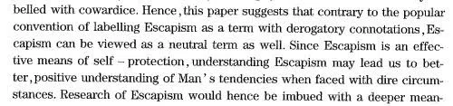 The same passage in Chinese was spotted in Mr Wang’s paper: “Therefore, the author believes that escapism can also be a neutral term compared to the common vocabulary that is widely regarded as derogatory. Understanding escapism may bring us a positive understanding of the human tendency to face distressing situations, because ‘Escapism is an effective means of self-protection’.”