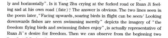 To give an example, Prof Qu wrote in his analysis of a poem: “Is Yang Zhu crying at the forked road or Ruan Ji feeling sad at his own road (fate)? The answer is obvious. The two lines seen in the poem later, ‘Facing upwards, soaring birds in flight can be seen/ Looking downwards fishes are swimming merrily’ depicts the imagery of ‘the freedom flying birds and swimming fishes enjoy’, (are) actually the representative of Ruan Ji’s desire for freedom.”