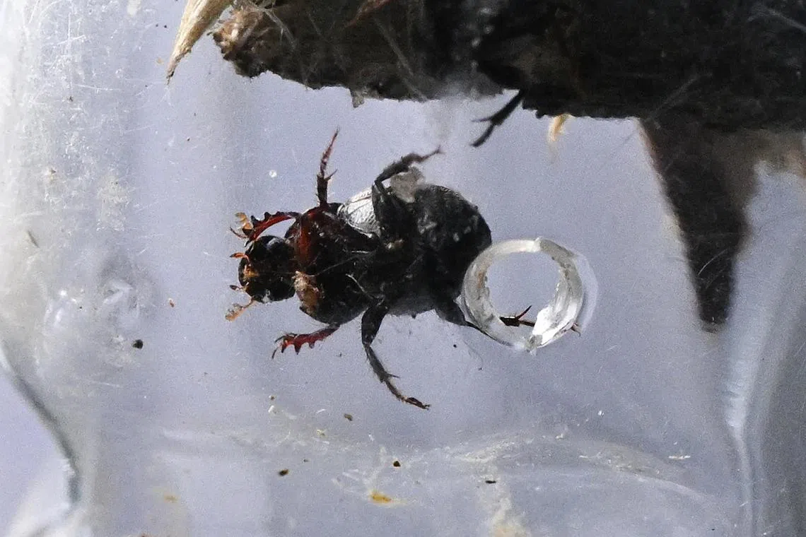 A dung beetle inside a dung beetle trap at Upper Pierce Reservoir, on Feb 8, 2023.