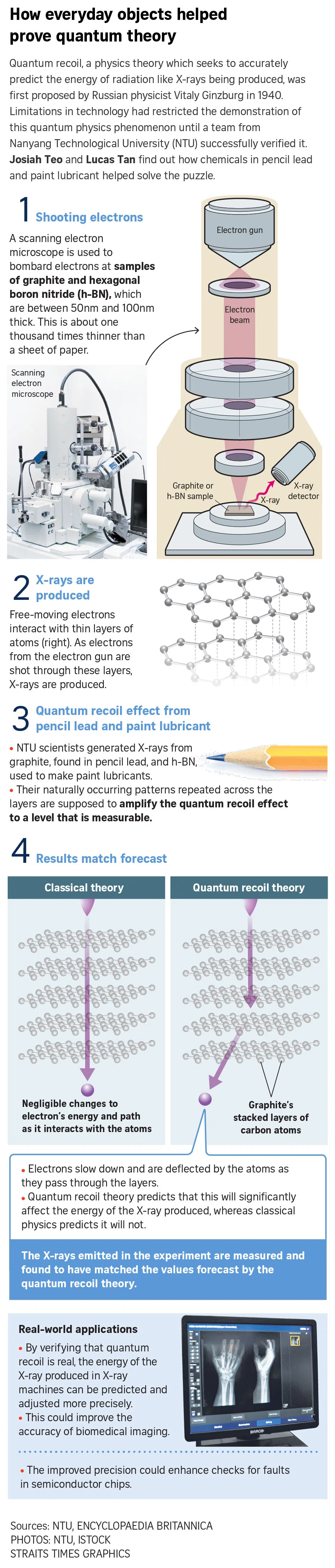 The NTU team, which had already been researching the production of X-rays by exposing inorganic compounds about the size of computer chips to moving electrons, turned their experiments to quantum recoil.