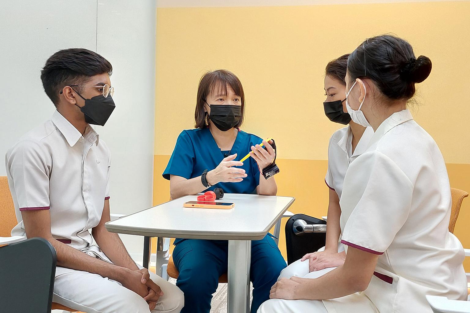 Ms Pauline Hu (centre) has been a nursing lecturer at ITE College East for the past 10 years.