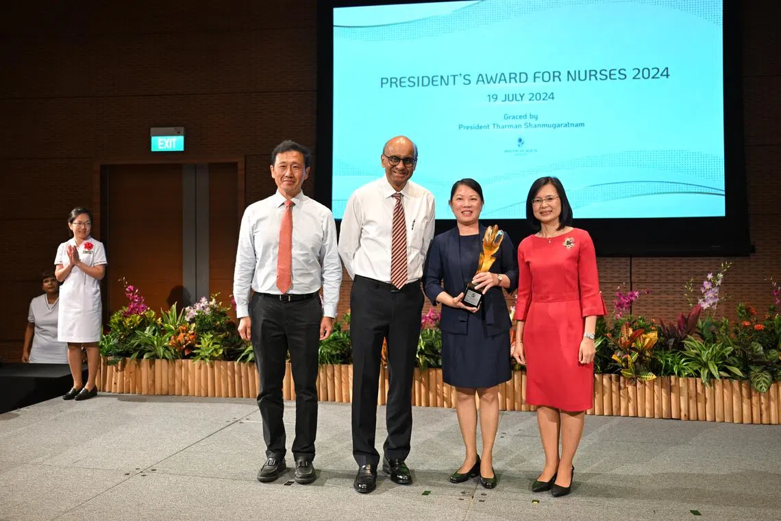 She is one of five nursing leaders who received the award from President Tharman Shanmugaratnam in a ceremony at The Star Gallery.