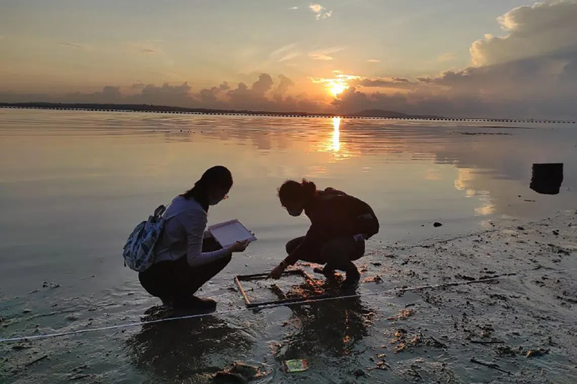 Shakura conducting intertidal surveys at Changi Beach for her PhD at NUS CNCS.