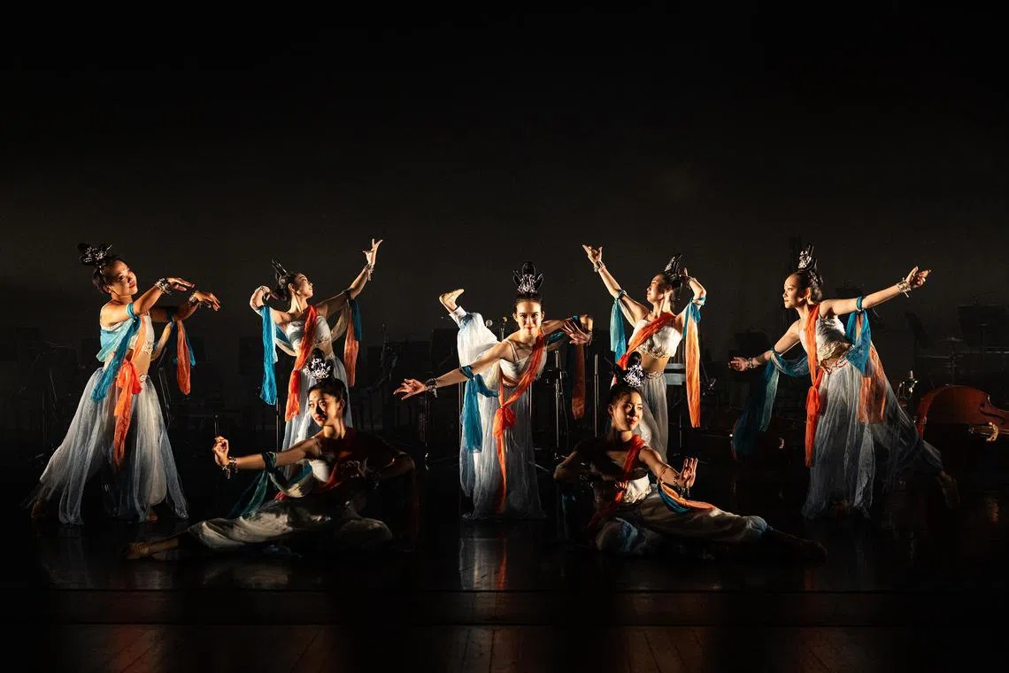 An NUS Chinese dance performance titled Journey To The East, which was a collaborative performance with the NUS Chinese Orchestra, for Primary 6 pupils on Nov 2, 2023.