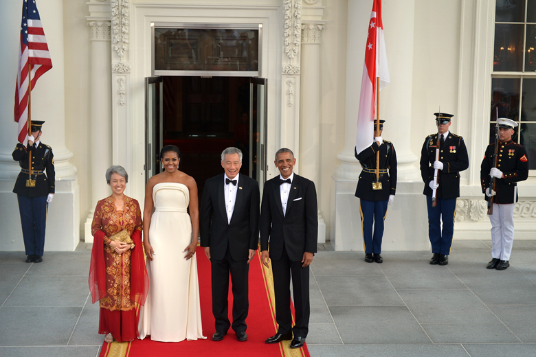 Prime Minister Lee Hsien Loong and his wife Ho Ching pose for a photo with then-US President Barack Obama and his wife Michelle at the White House before attending a state dinner in this file photo taken on Aug 3, 2016.
