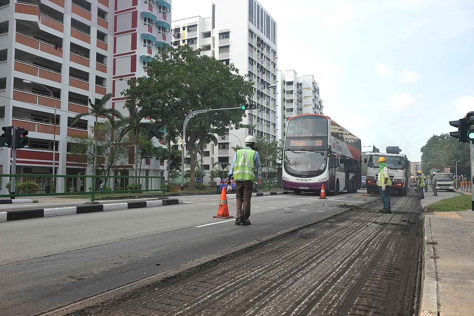 The National Environment Agency and Land Transport Authority were also involved in the clean-up and resurfacing of the affected stretch, which ran towards Tampines Street 44.