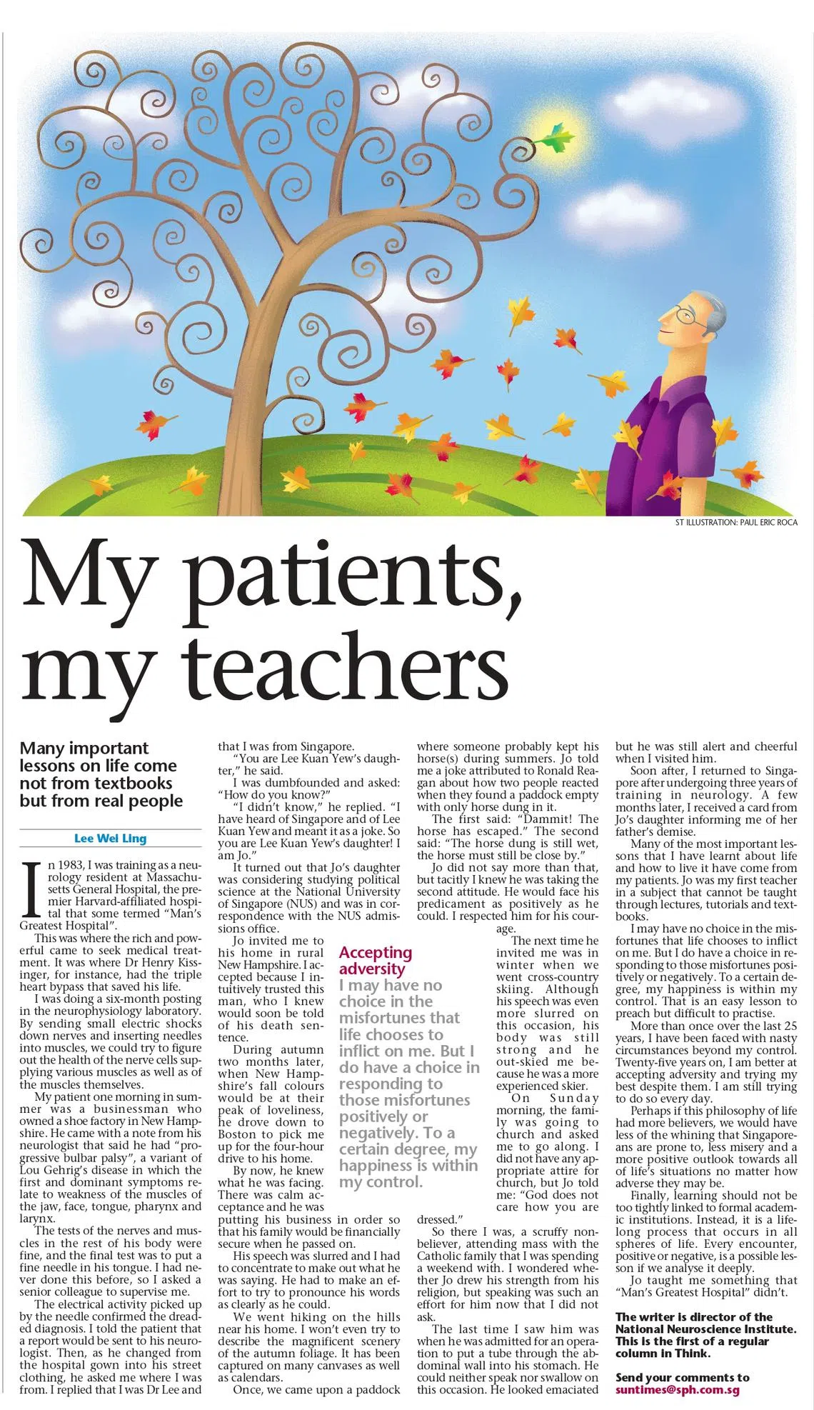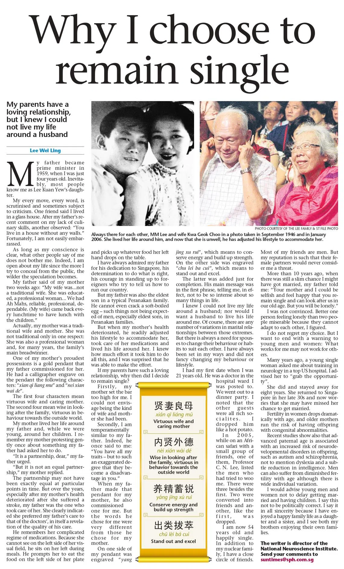 From 2006 to 2016, Dr Lee Wei Ling penned about 160 columns in The Straits Times and The Sunday Times.