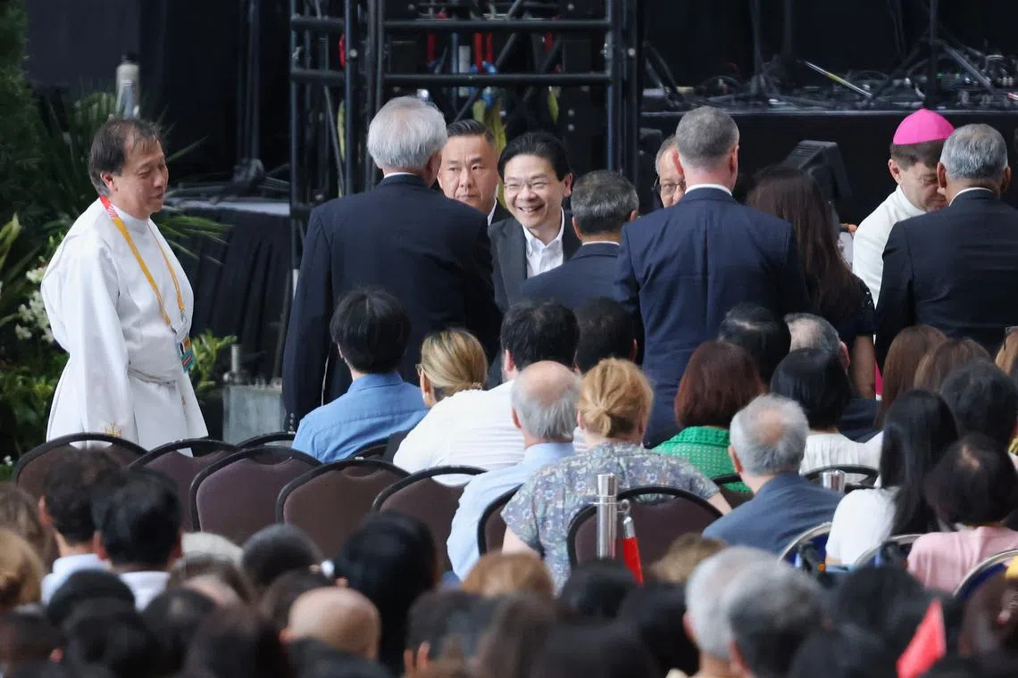 PM Lawrence Wong arriving at the National Stadium ahead of the papal mass on Sept 12.