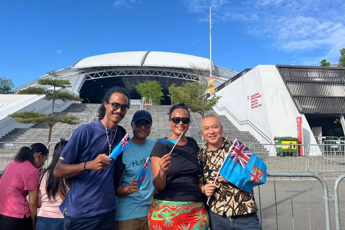 She and a group of family members and friends flew in from Fiji, arriving in Singapore at 5am on Sept 12. They cheerfully stood under the sun to listen to the muffled liturgical music coming from the stadium.