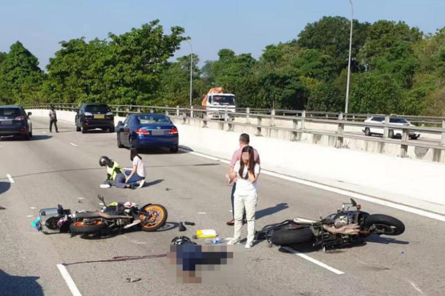 A 33-year-old male motorcyclist was conscious when taken to Ng Teng Fong General Hospital, while the other motorcyclist, a 25-year-old man, was pronounced dead by paramedics at the scene.