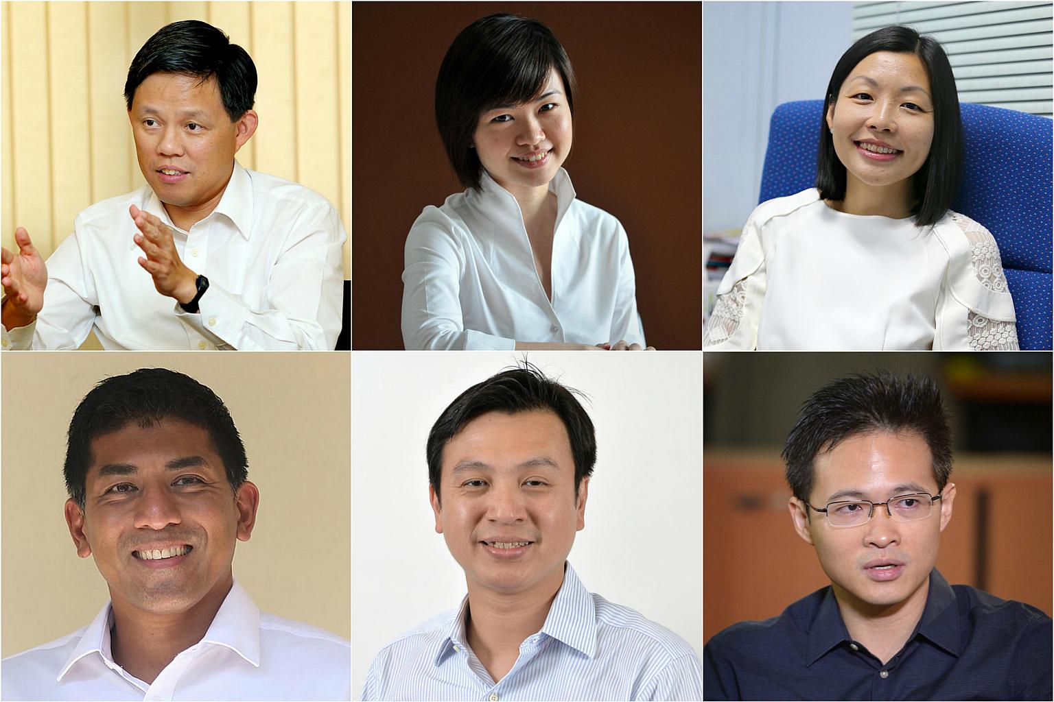 (Clockwise, from top left) MPs Chan Chun Sing, Tin Pei Ling, Cheryl Chan, Desmond Choo, Chia Shi-Lu and Darryl David were among those affected by fake Facebook accounts in the last few days.