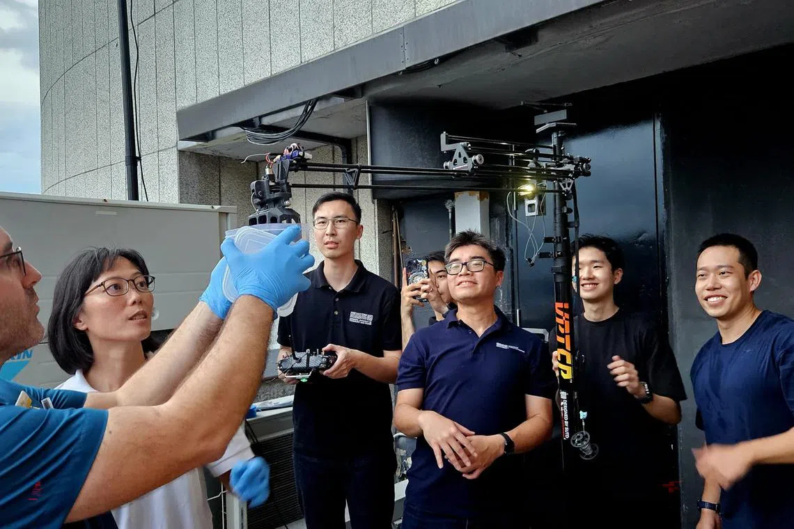 NParks said the peregrine eggs were retrieved with the help of robotics researchers from SUTD, who opted to use a device consisting of a telescopic pole and a claw controlled by cables on the ground