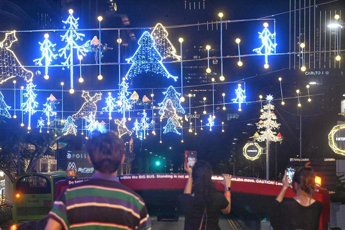 Families and friends took photos in front of glittering arches and a 14m-tall Christmas tree at the Ngee Ann City Civic Plaza, the tallest on the shopping street this year.