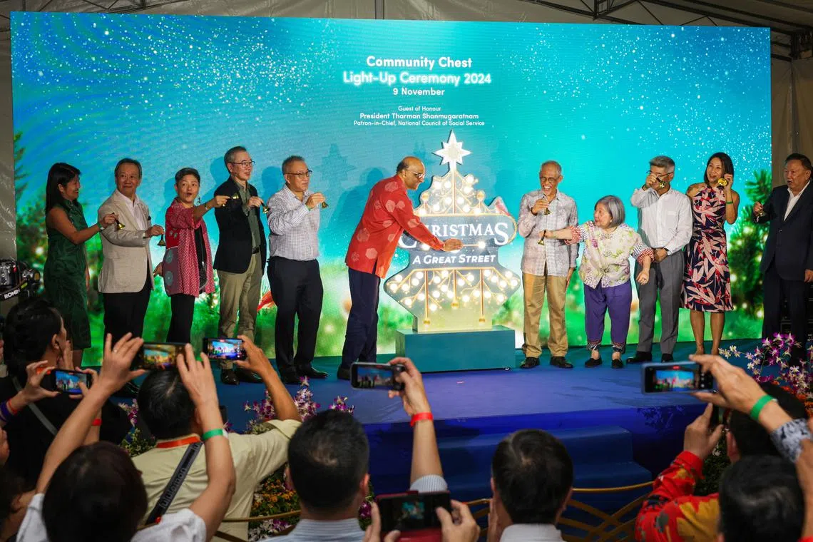 President Tharman Shanmugaratnam and Minister for Social and Family Development Masagos Zulkifli at the launch of the Christmas On A Great Street light-up on Nov 9.