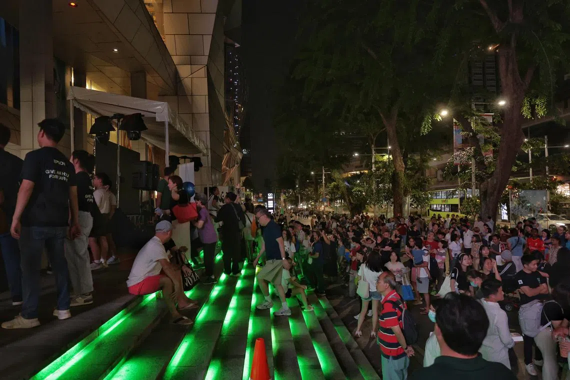 An outdoor event at Wisma Atria with non-essential lights switched off after the WWF Earth Hour Switch Off moment at 8.30pm on March 23.