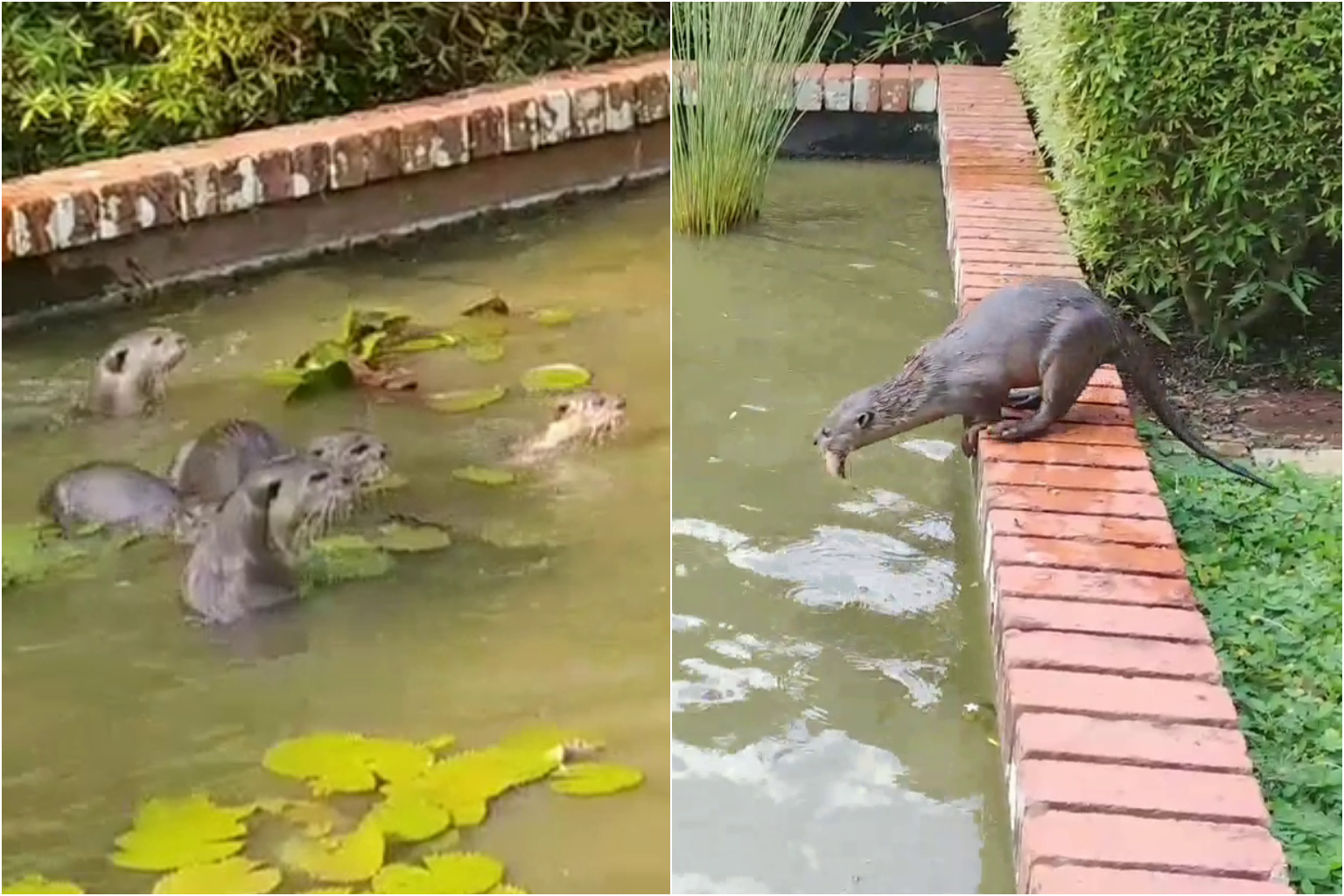 Otters have splashing good time with a feast in fish ponds at Botanic Gardens
