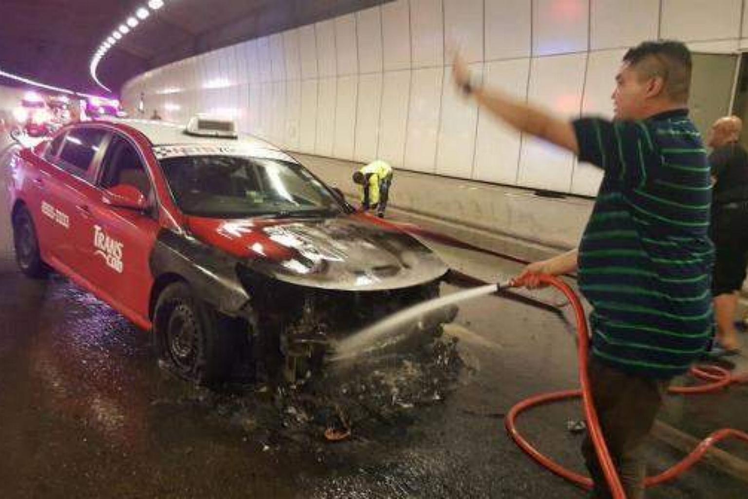 SINGAPORE - The safety of their fellow road users was foremost on the minds of two friends when they helped put out a taxi fire in the Kallang-Paya Lebar Expressway (KPE) tunnel on Tuesday (Aug 29) evening.