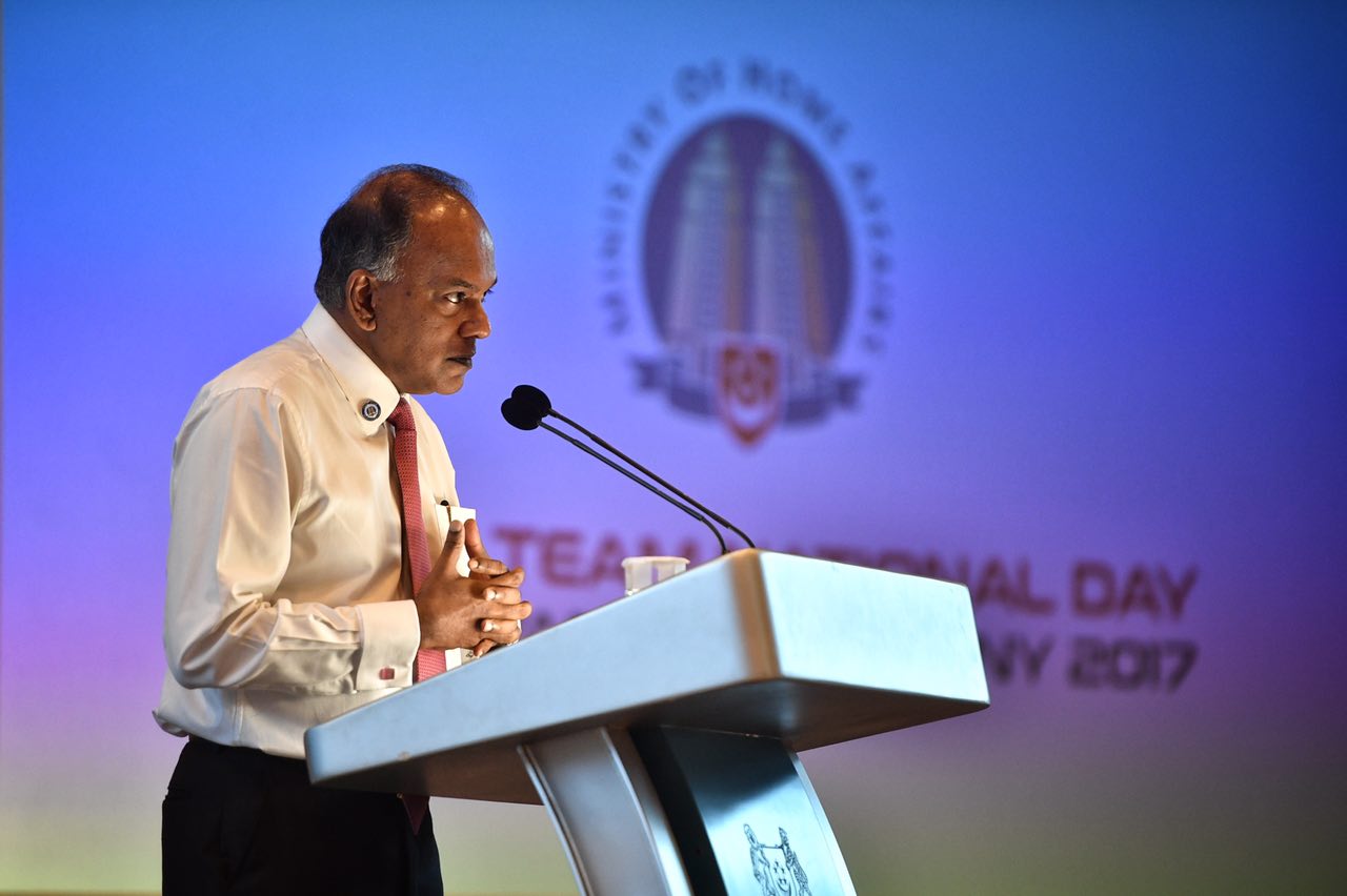 Home Affairs and Law Minister K. Shanmugam speaking at the Home Team National Day Observance Ceremony, on Aug 2, 2017.