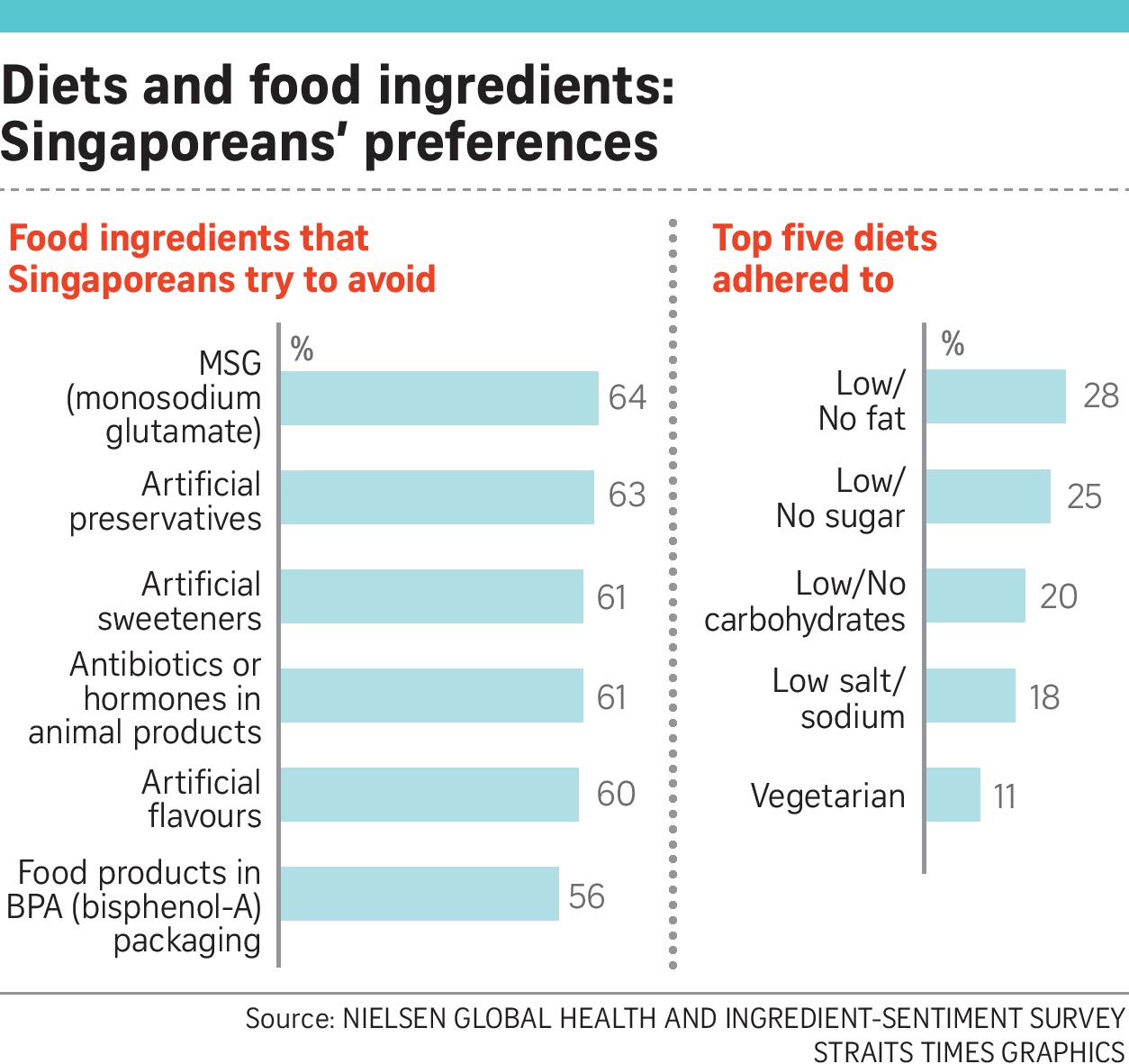 The survey also found that what most Singapore respondents try to avoid are monosodium glutamate or MSG, and artificial preservatives.
