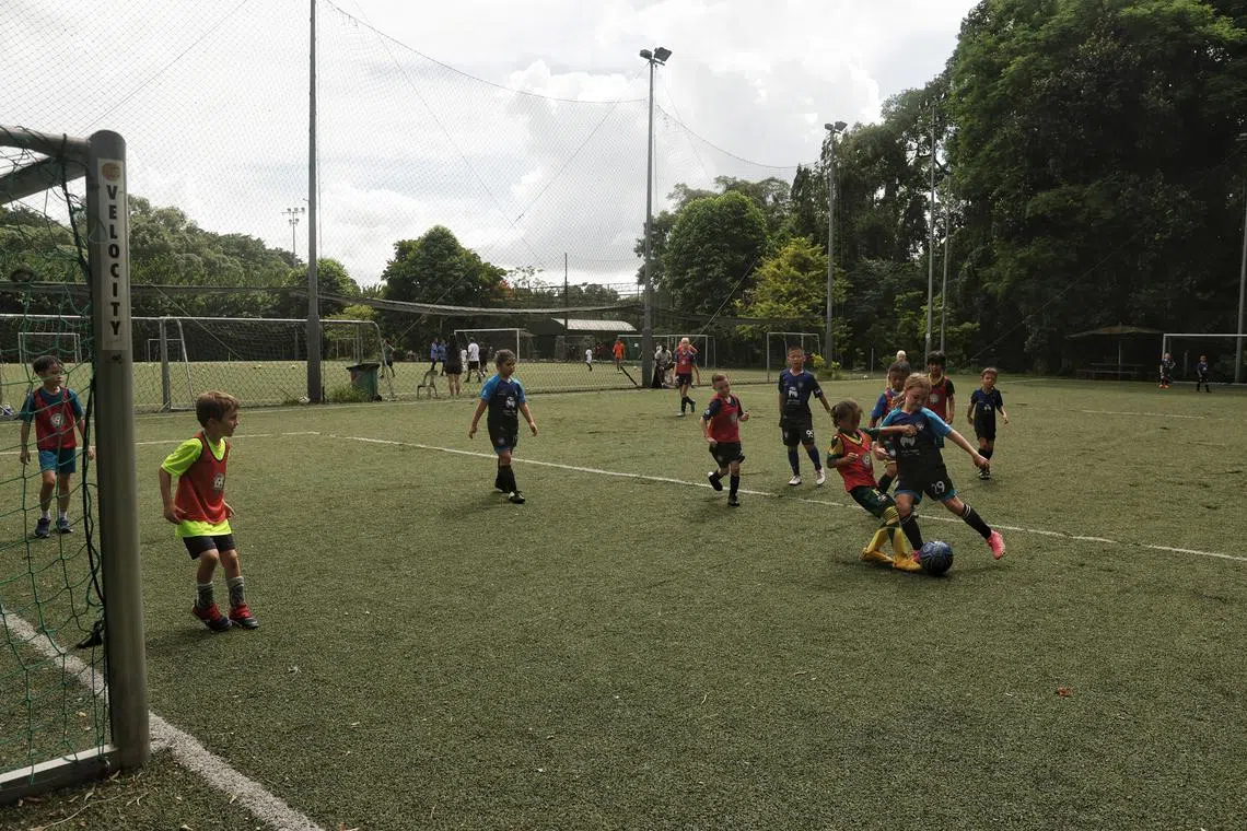 Children playing football at Rainforest Sports Hub Turf Club, on Dec 21.