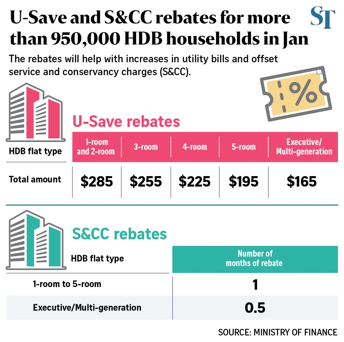 Over 950,000 Singaporean households to get U-Save, S&CC rebates in January