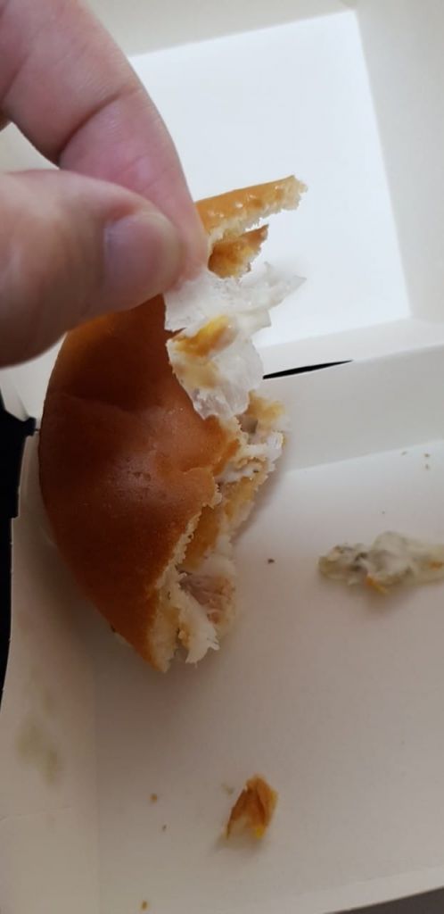 He said he found the "piece of plastic embedded inside (the) fish patty" as he was eating it.