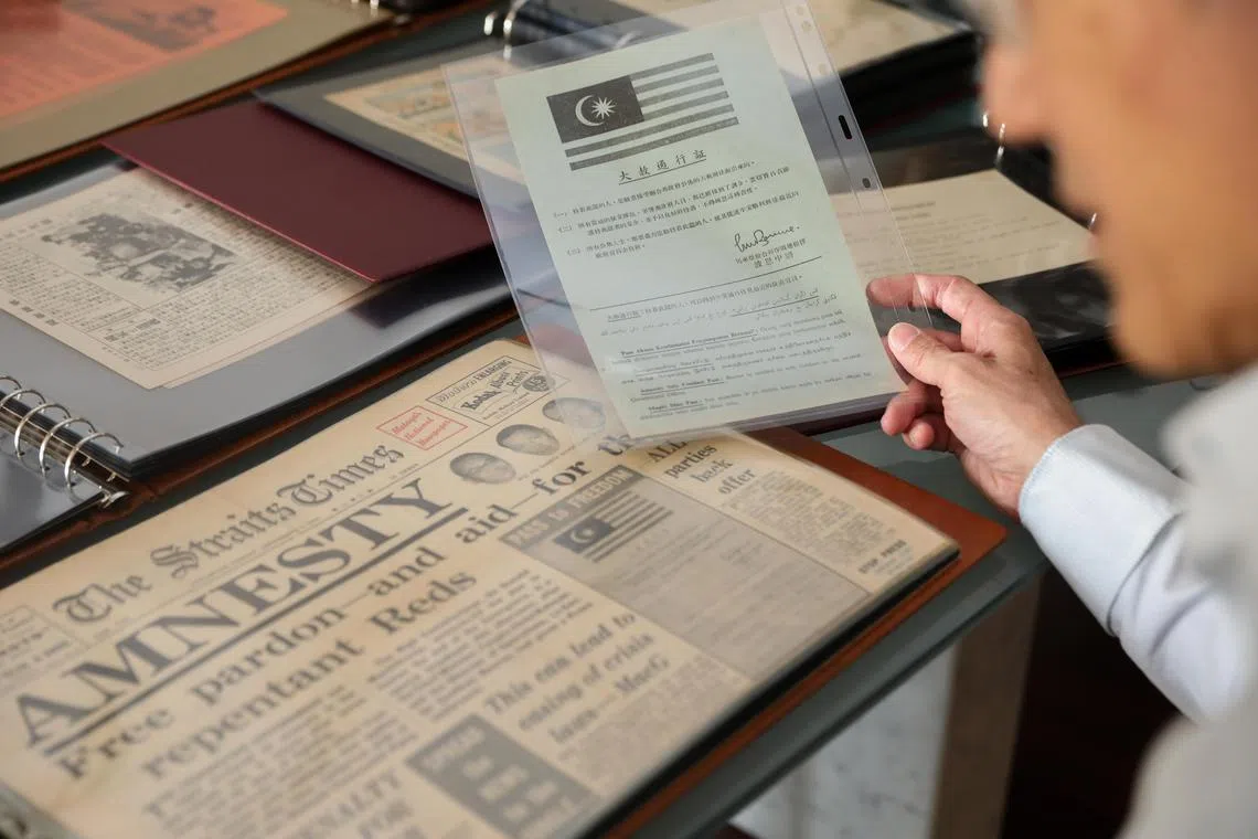 Dr Benjamin Seet looks through his 30-year collection of propaganda leaflets used in Singapore, Malaya & SEA.