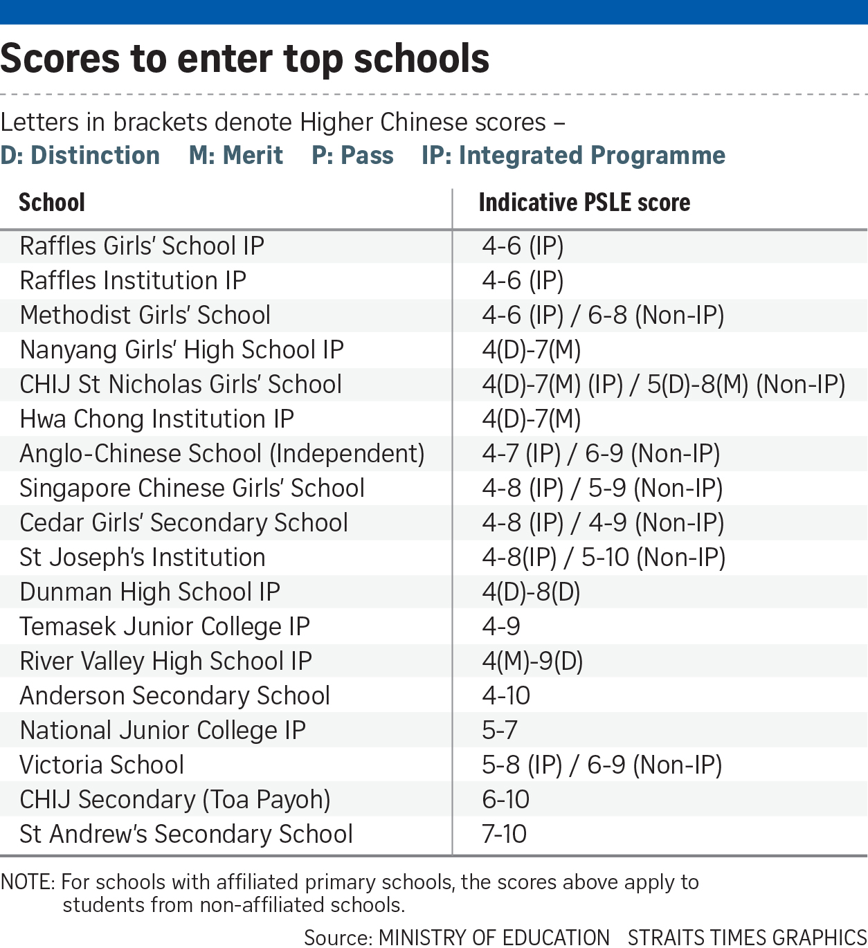 For SAP schools, the entry score range will include the pupils' Higher Mother Tongue grade in brackets, if applicable.