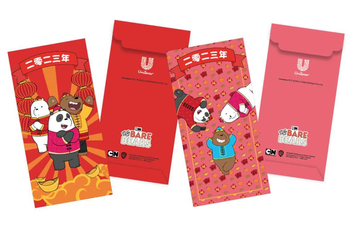 For more cute red packets to ooh and ahh over, get your hands on the free We Bare Bears designs. The young and young at heart will dig the drawings of Ice Bear holding gold ingots and Panda taking a selfie with firecrackers.