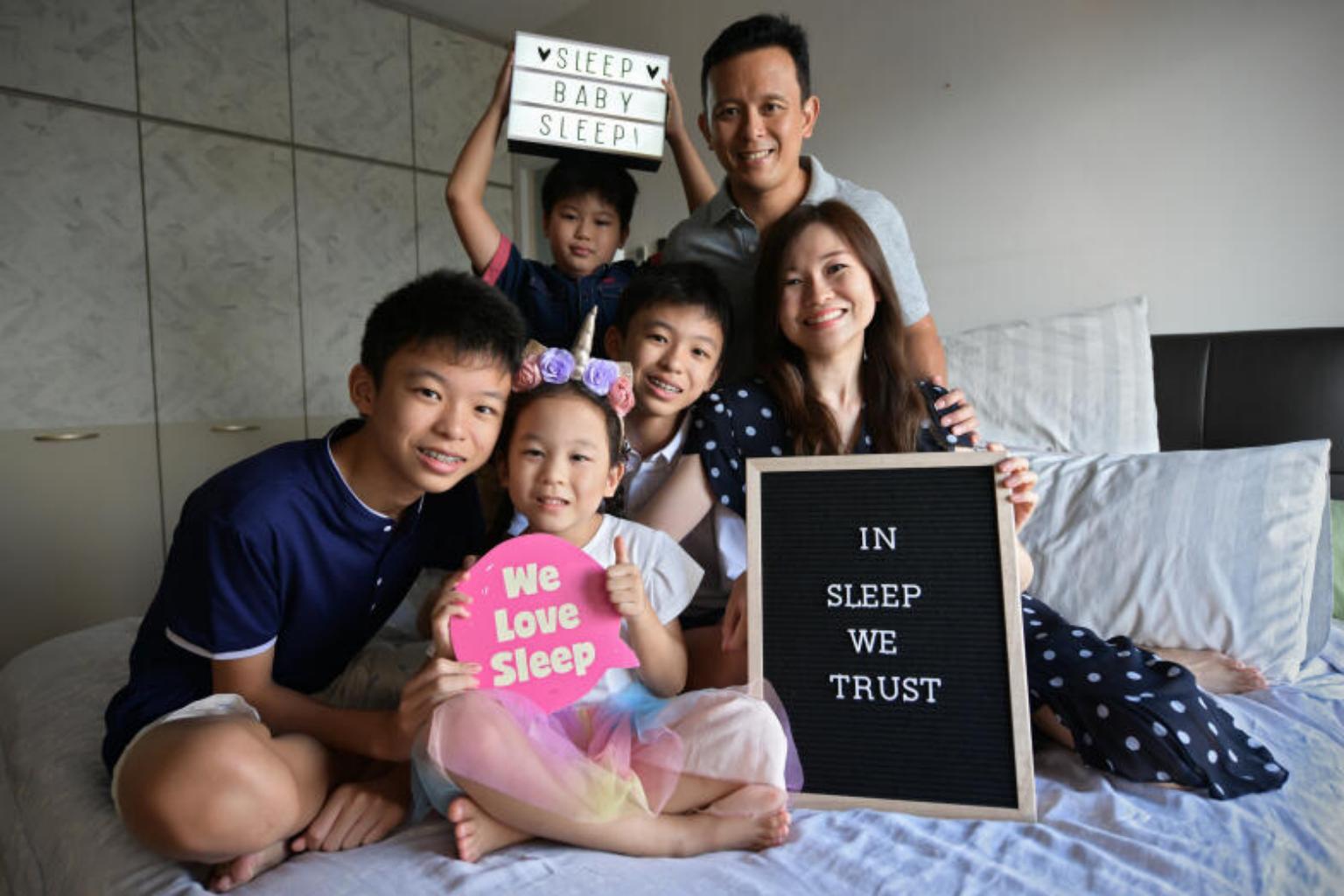 Ms Zoe Chu tries to get her children to sleep earlier but often can't because of their school work and tuition.